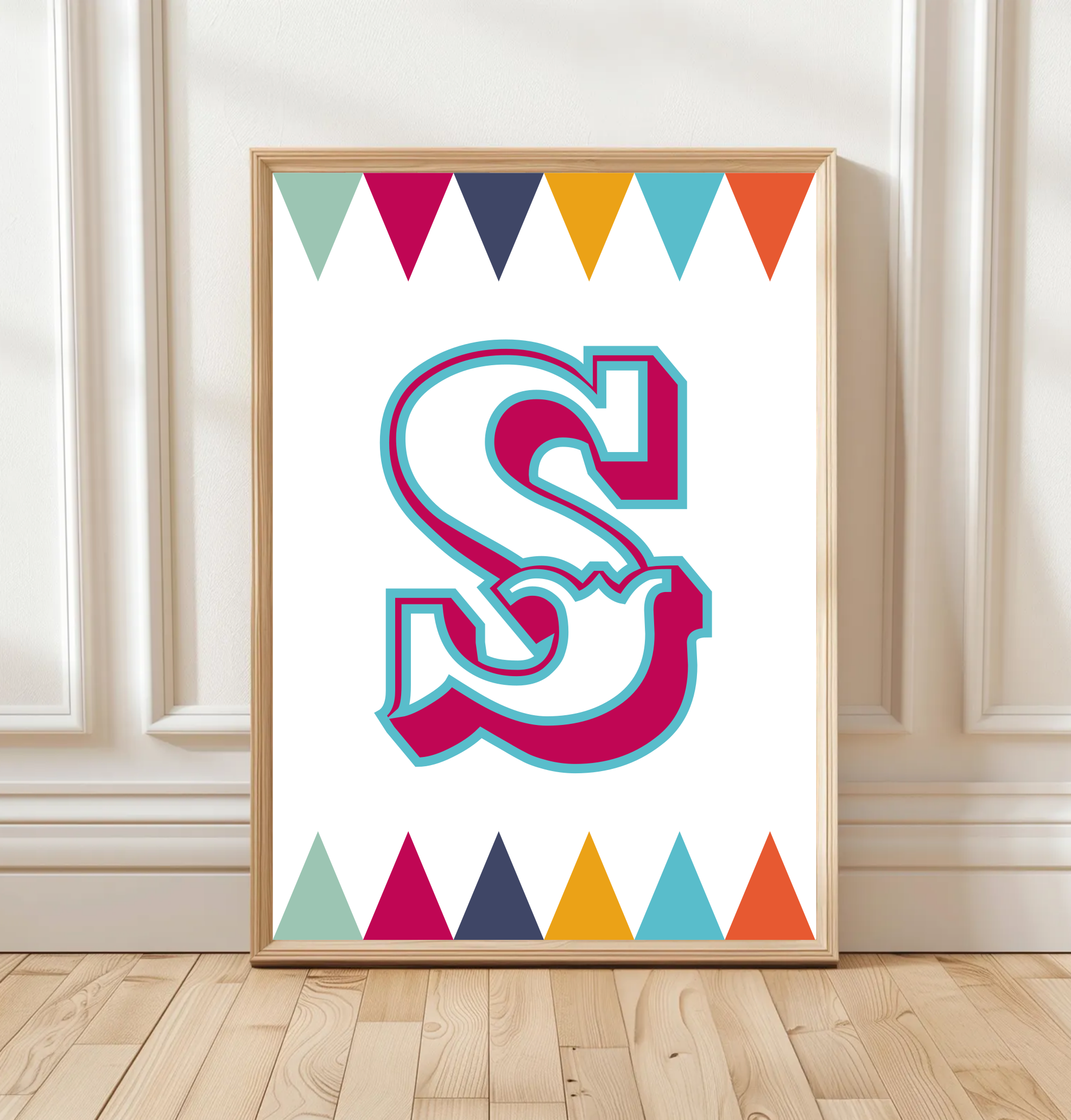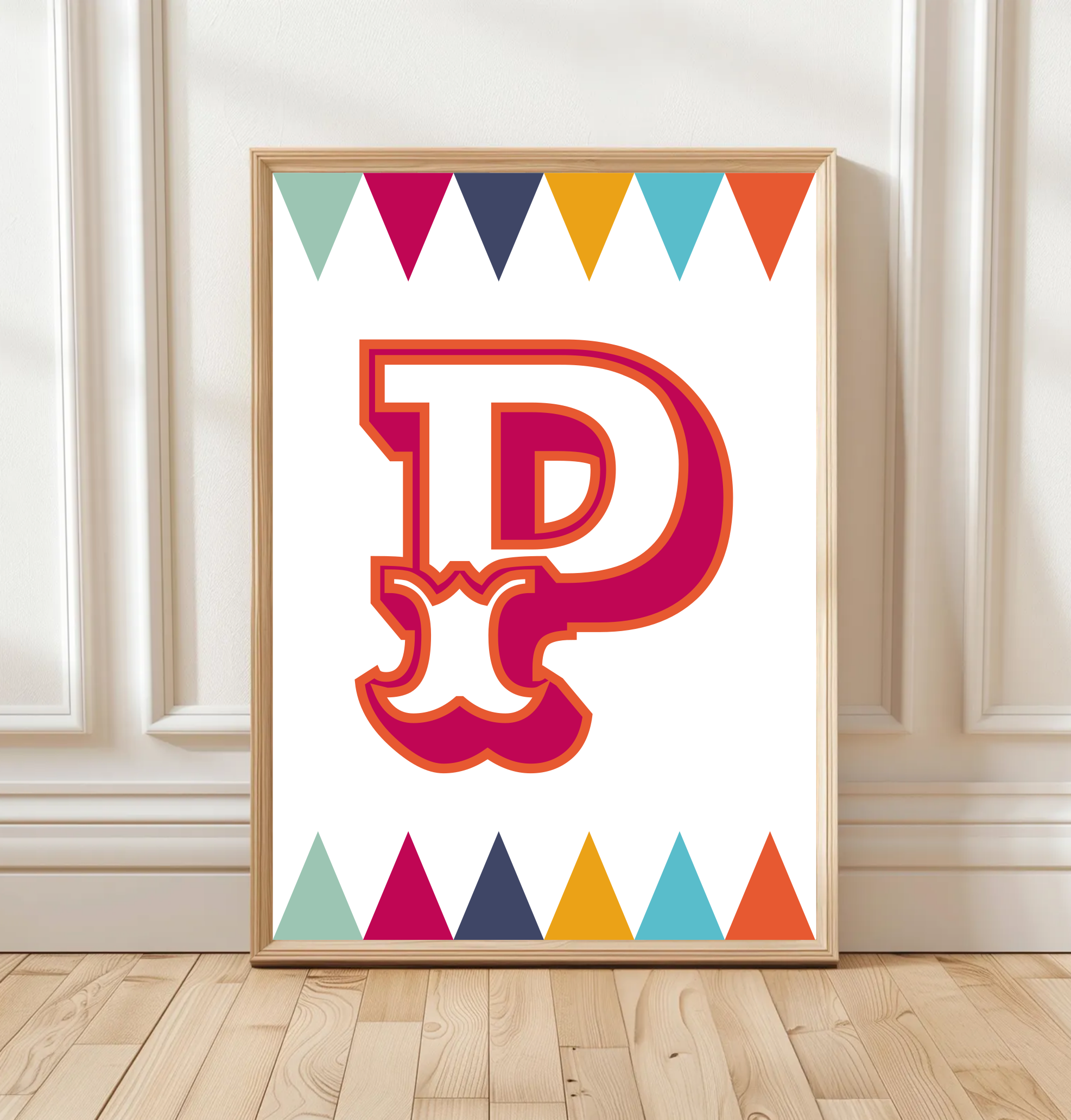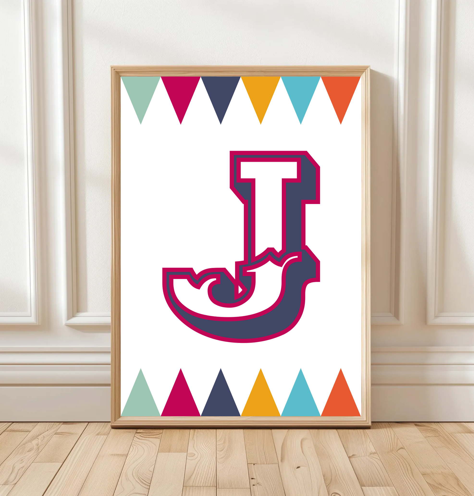Each poster is personalised with your child’s initial and name, making it a unique piece of children’s wall art that feels truly theirs. Perfect for nurseries, bedrooms, or playrooms, this print adds character and colour to any space.