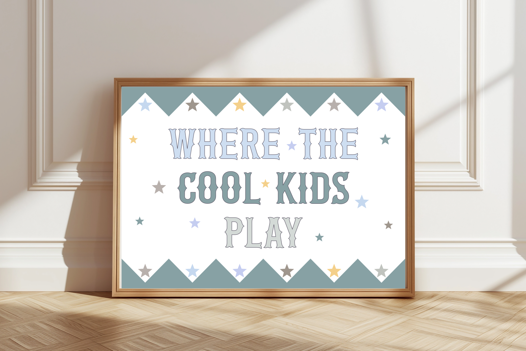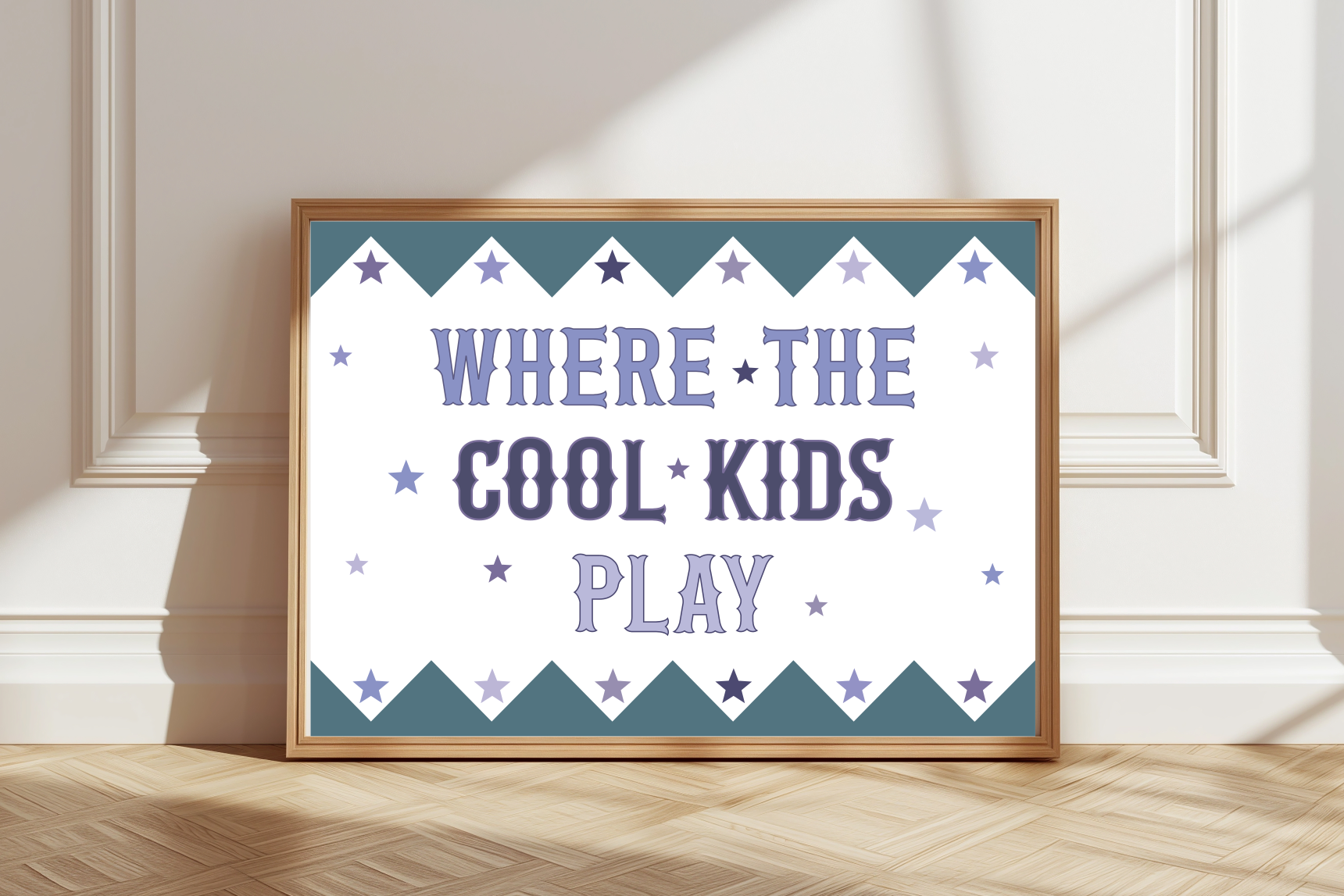 The fun typography and star details create a joyful, energetic feel that kids love. Printed on premium matte paper for vibrant, long‑lasting colour, and available in a range of colour options to suit your home.